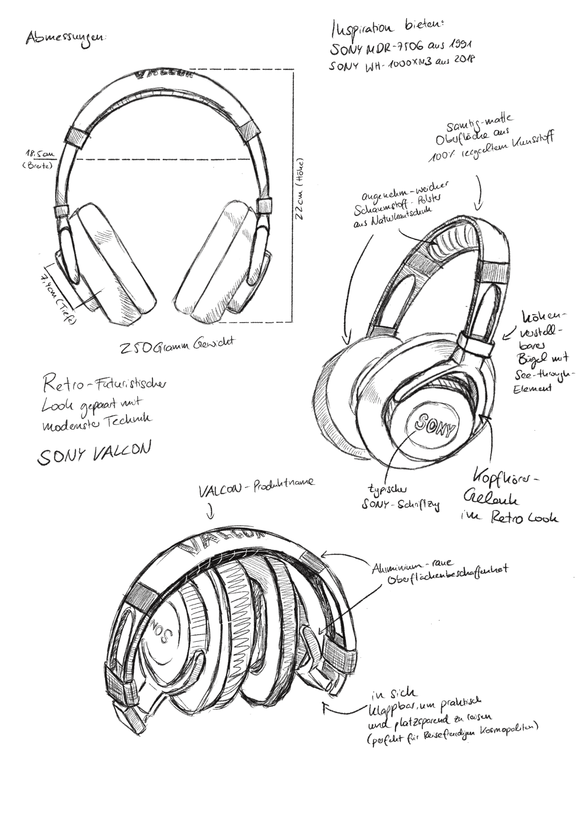 Firstly, I carefully read and analyzed the briefing multiple times, ensuring that I fully comprehended everything. Following this I wrote a comprehensive rebriefing. A rebriefing provides an opportunity to introduce oneself and clarify any questions or concerns between parties, essentially serving as an alignment of information. During the rebriefing, I posed questions regarding deadlines, budget, style guides, corporate identity, as well as more specific questions about the look and feel of the headphones.